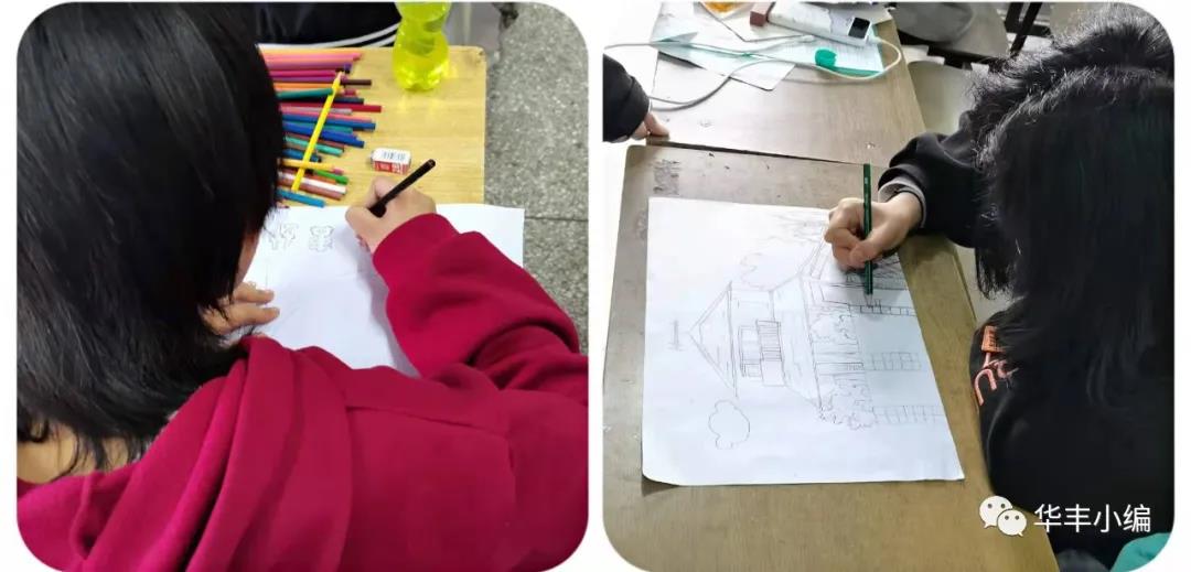 過程中,參賽同學(xué)根據(jù)興趣愛好,利用美術(shù)知識認(rèn)真作畫、自由發(fā)揮,用畫筆描繪和勾勒出心中的事物,作品有素描畫、彩鉛畫等。