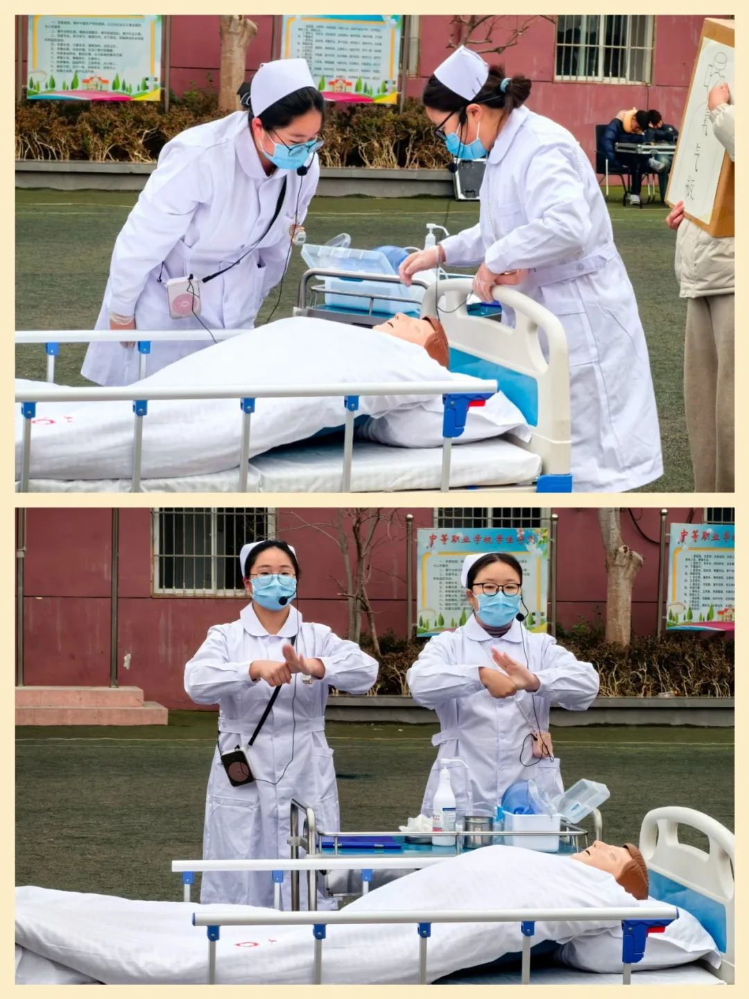 我校開展的大賽項(xiàng)目有舞蹈、雙人心肺復(fù)蘇、指導(dǎo)老年人康復(fù)訓(xùn)練、鋪備用床、戰(zhàn)場綜合演練、單個(gè)軍人隊(duì)列動(dòng)作、電梯維保、高鐵禮儀、消防索降滅火、淮劇。